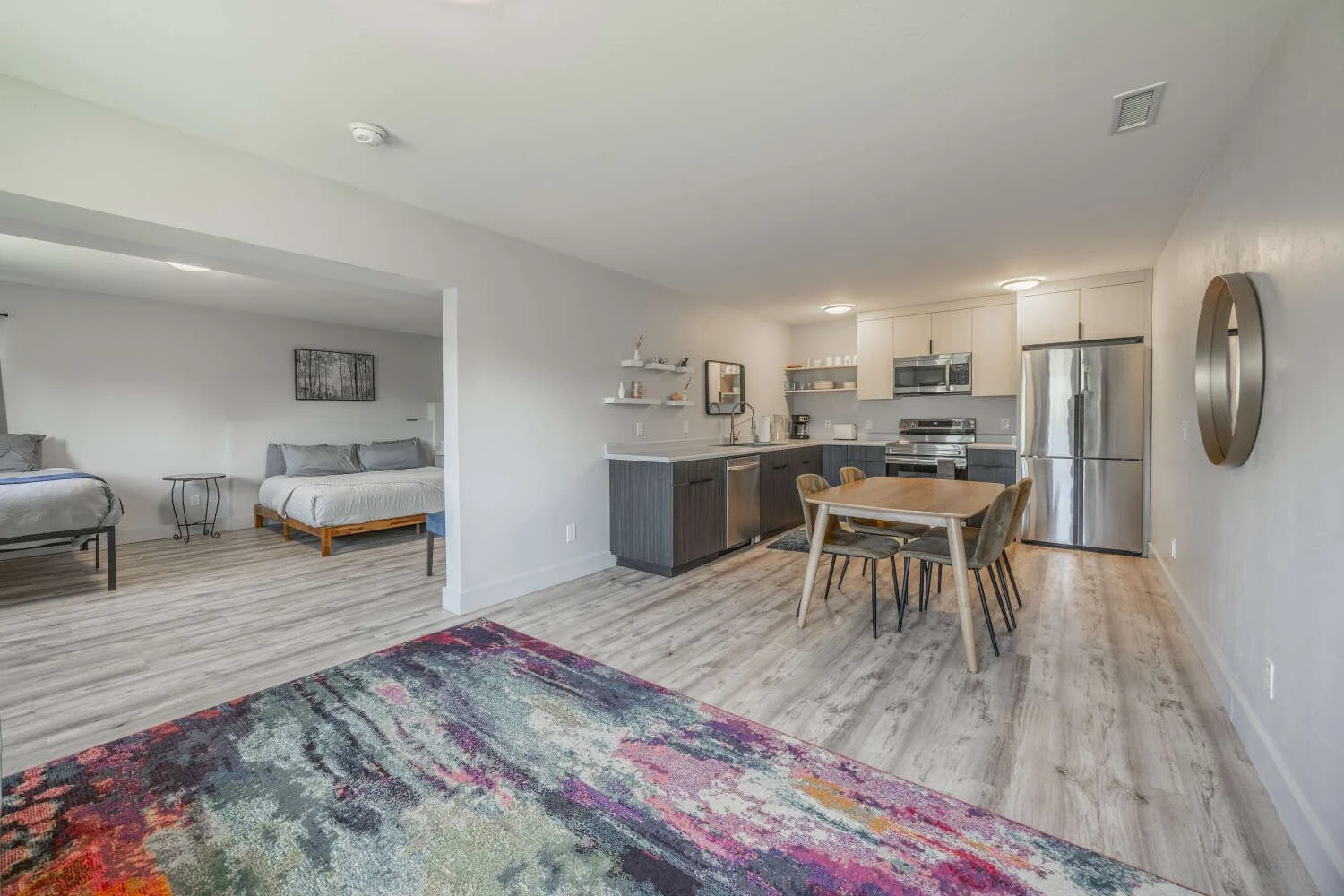 For a more intimate escape, the lower-level studio is a private haven with all the essentials for a comfortable stay. Perfect for couples or small families, it offers a peaceful retreat with cozy living space, a fully equipped kitchenette, and a relaxing atmosphere. Enjoy the tranquility of your own space while being just moments away from the charm and activities of Ridgway, CO.